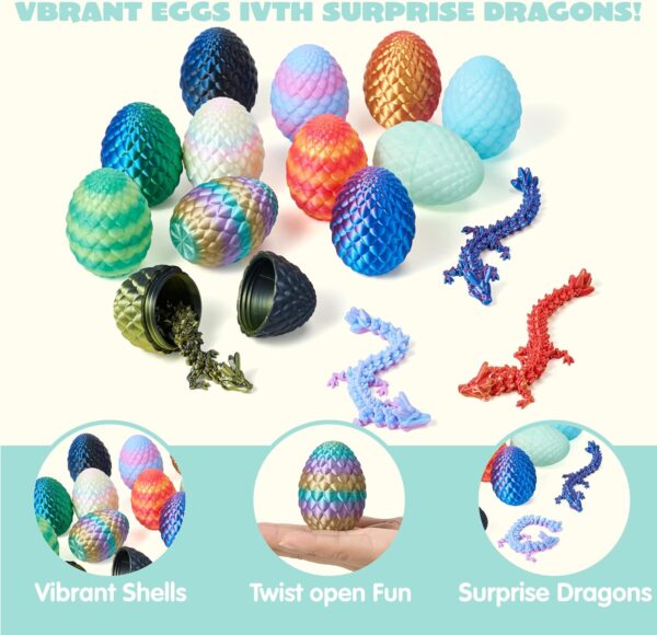 12 Pcs 3D Printed Dragon Eggs with Colorful Dragon Inside, Magic Articulated Toys, Basket Stuffers for Boys & Girls, Easter Theme Party Favors, Easter Egg Hunt, Classroom Prize Supplies Gifts